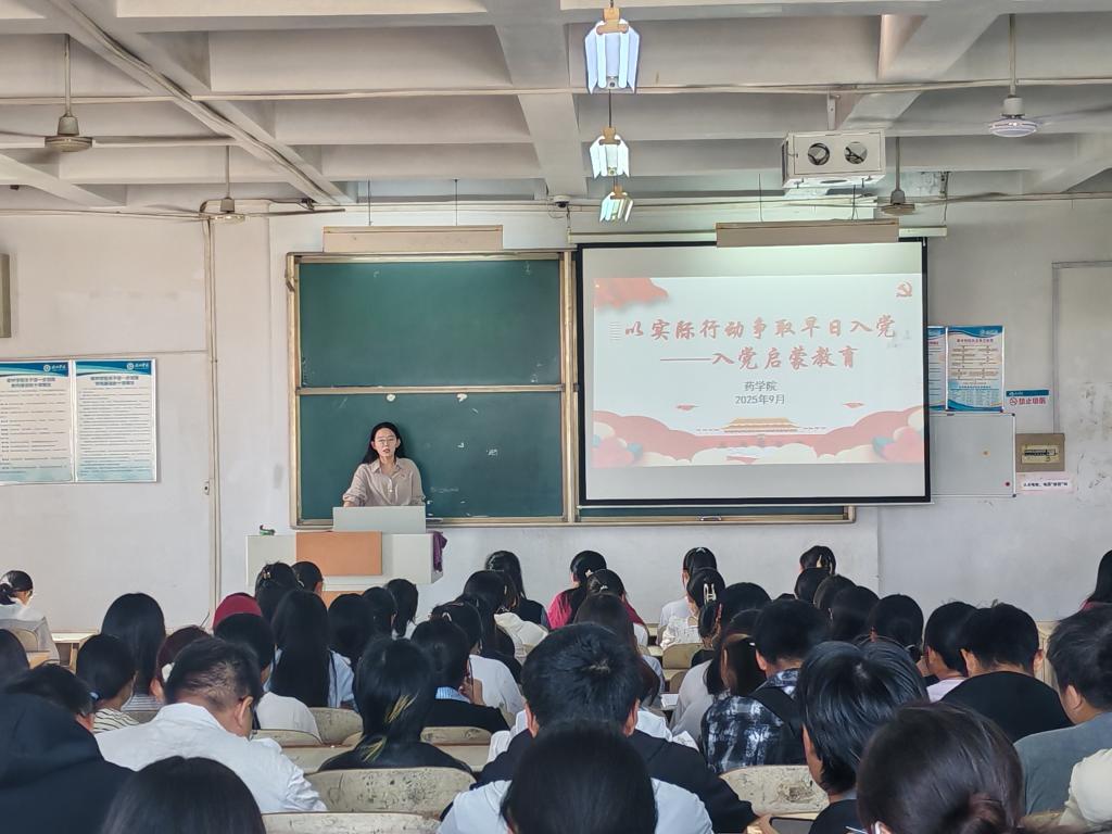本次教育以“赓续红色血脉,勇担青春使命”为主题,围绕中国共产党的发展历程、入党基本条件、发展党员程序等核心内容展开讲解。宣讲老师结合药学专业特色,分享优秀党员的先进事迹,阐释“为何入党、如何入党”的深刻内涵,并现场解读入党申请书写作规范,为新生答疑解惑。同学们认真记录、踊跃互动,纷纷表示对党组织有了更清晰的认识。