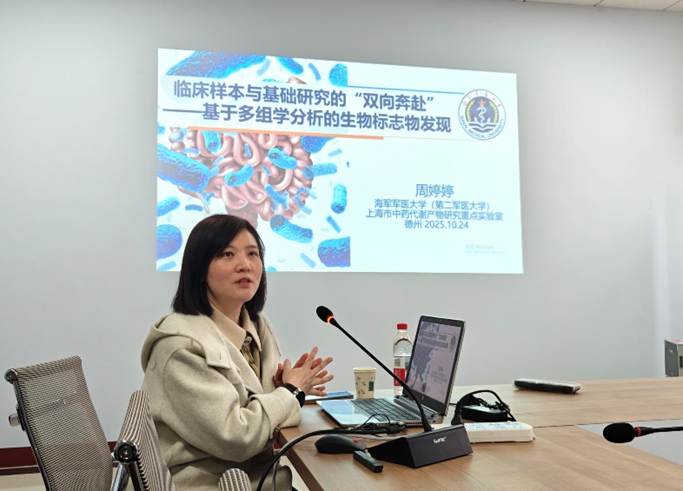 2025年10 月 24 日,药苑讲坛第七期在启智楼 0529 会议室如期举行。本次讲坛特邀上海市药物(中药)代谢产物研究重点实验室主任、海军军医大学药学系药物分析学教研室主任周婷婷教授主讲,bbin游戏网站大全官网博士教师、研究生、本科生代表参加交流。讲坛分学术讲座和基金项目指导两个阶段进行。