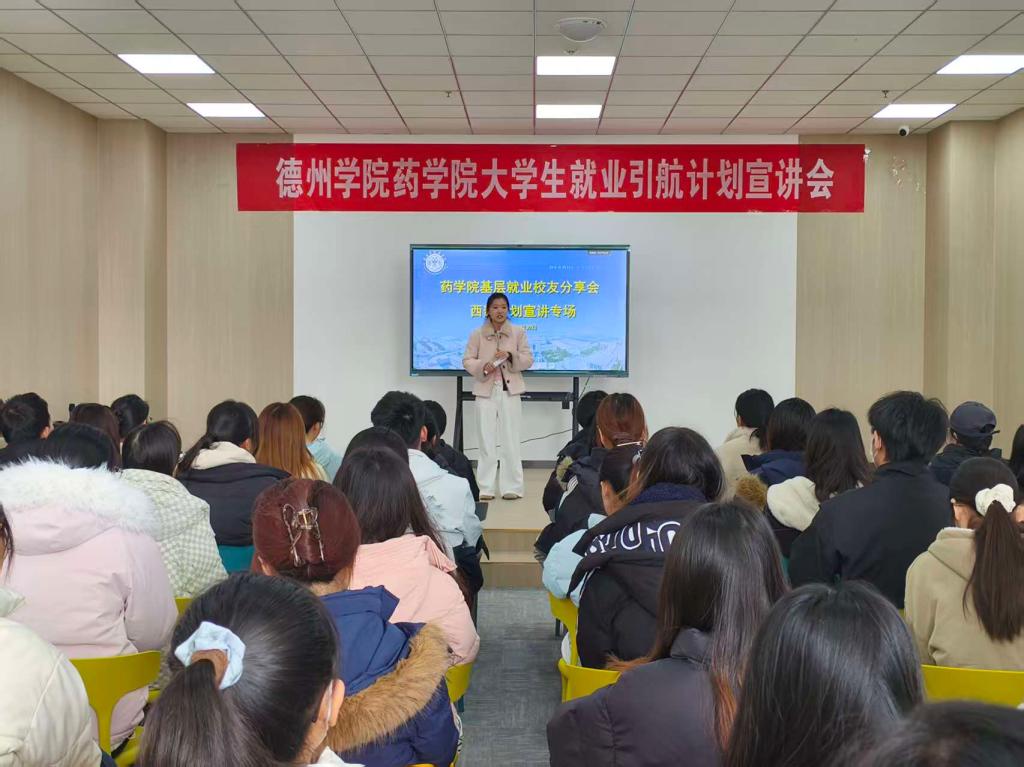 分享会聚焦西部计划,以“响应国家号召,投身基层建设”为核心,简要介绍了西部计划的项目背景、政策支持及学院鼓励基层就业的举措。王心茹结合自身服务经历,通过鲜活的基层工作案例,生动讲述了在岗位职责履行、突发挑战应对中的成长与感悟。她强调,基层是青年成长成才的“练兵场”,鼓励同学们将个人发展与国家需求紧密结合,投身于强国建设与民族复兴伟大实践之中。真挚的分享让在场学子直观感受到基层工作的价值与意义,进一步激发了投身基层建设的热情。学生们纷纷表示,此次分享会让大家对西部计划及基层就业有了更具体、更深入的认知,深刻意识到基层是施展才华的广阔舞台,未来将认真考量投身基层,用专业药学知识服务群众、奉献社会。